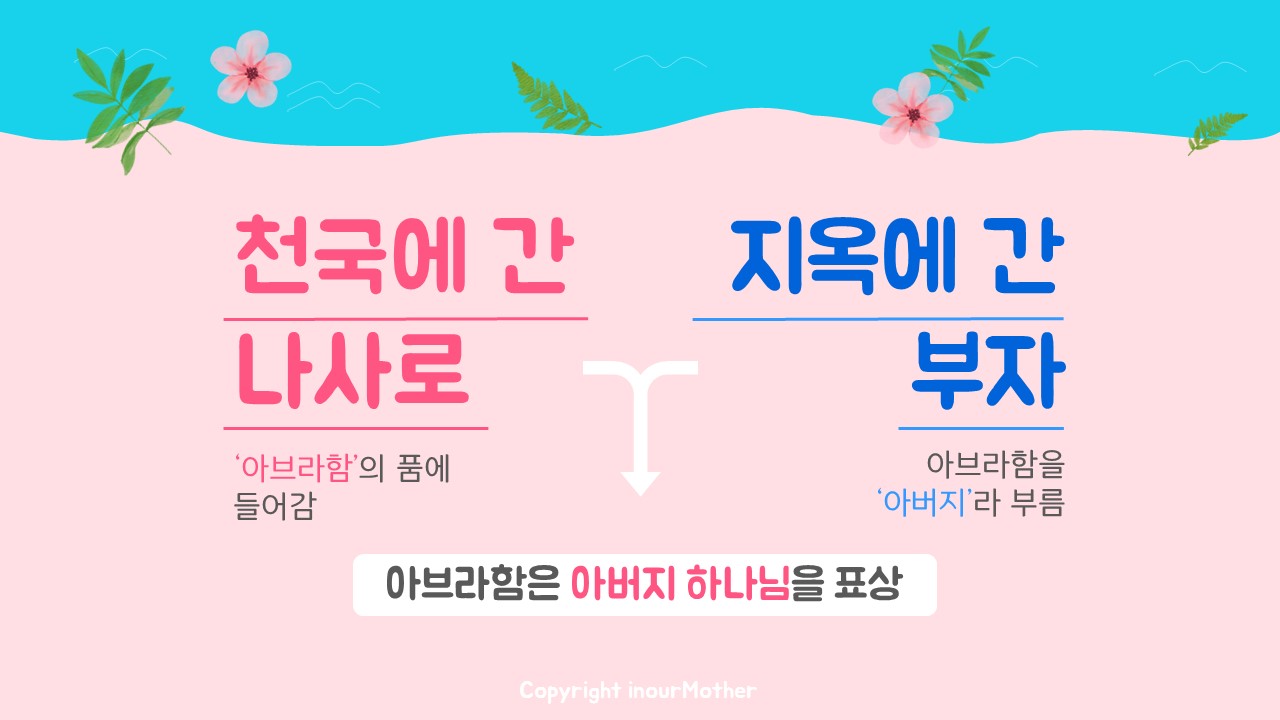 하나님께서는 아브라함을 통해 하늘나라의 상속자에 대해 예언을 하셨습니다(눅16장 19절)
